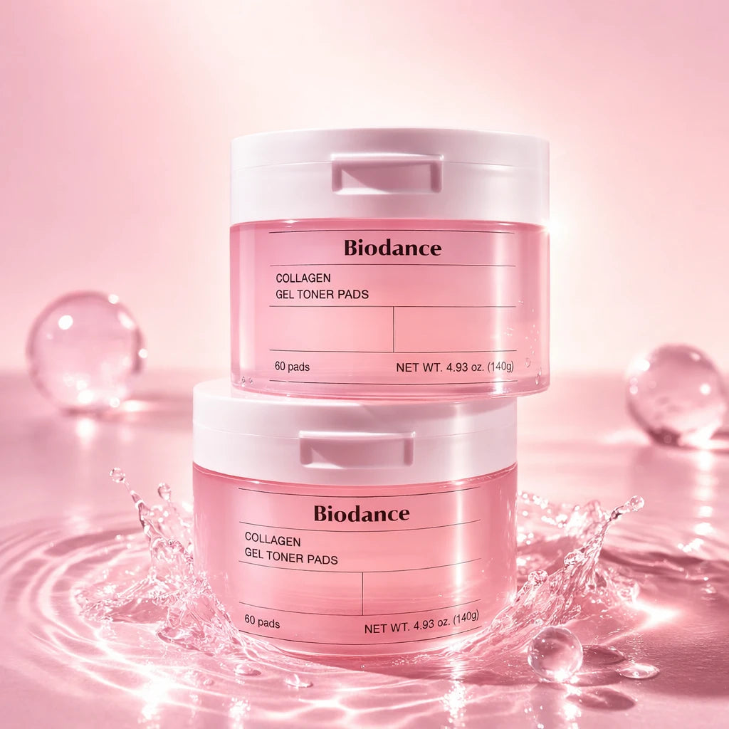 Les Collagen Gel Toner Pads de Biodance (60pads) sont des disques imbibés d’essence conçus pour hydrater intensément, lisser la texture et améliorer l’élasticité de la peau en un seul geste.